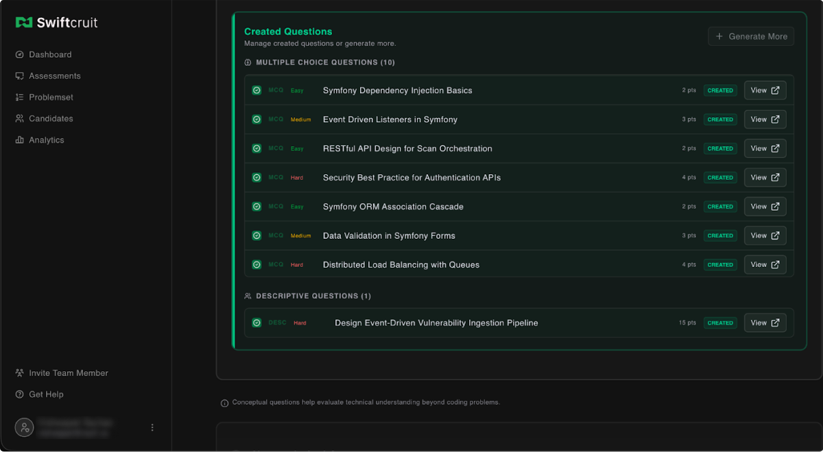 Swiftcruit represents a new model for technical hiring, one where assessments are generated automatically, candidate performance is analyzed deeply, and hiring decisions are supported by AI.